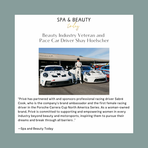 Spa & Beauty Today spotlights privé founder Shay Hoelscher, a beauty industry veteran and race car driver, on her mission to create clean, high-performance haircare while empowering women and giving back through Project Beauty Share.